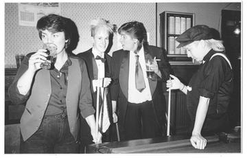 The community was comprised of pubs, parties, and clubs and within these settings were different groups of women. There was The Greyhound, The Nightingale, The Jug, The Viking, The Windmill, The Jester, The Old Mo, The Malt Shovel, The Victoria and then later, Peacocks. One-nighters happened at The Matador and The Mermaid and there was a famous night club spot called Legends, and the Birmingham Lesbian and Gay Centre. Not all these venues were exclusively queer.